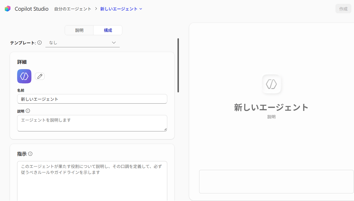 ③Copilotのエージェント作成機能で新しいエージェントを作成