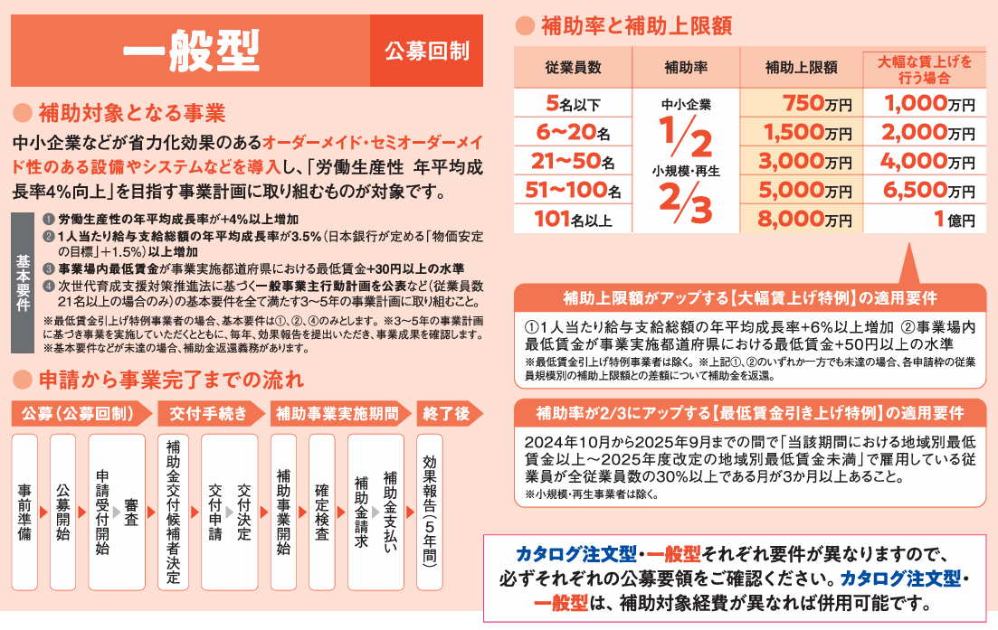 一般型は、カタログに載っていない設備・システムも含め、 自由度の高い省力化投資が認められる類型 です。